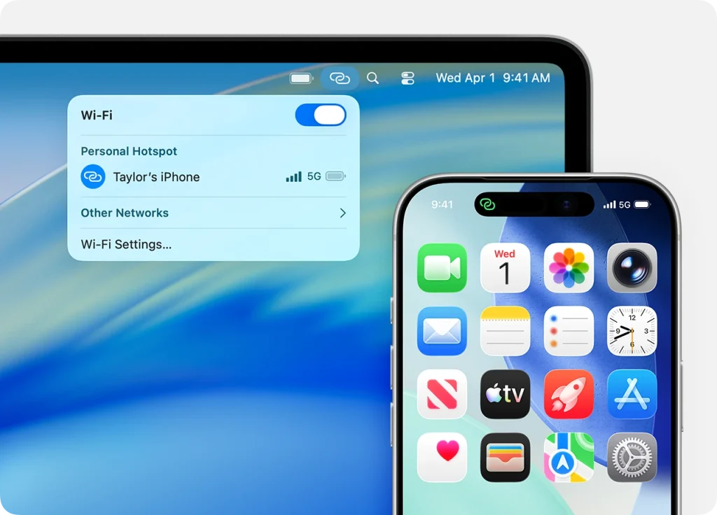 If you are traveling and have no Wi-Fi, your Mac can remotely wake up your iPhone’s Personal Hotspot.