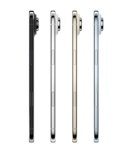 Especificaciones técnicas del iPhone AirAcabado negro espacial blanco nube dorado claro azul cielo Diseño de titanio, Parte delantera con Ceramic Shield 2, Parte trasera con Ceramic Shield